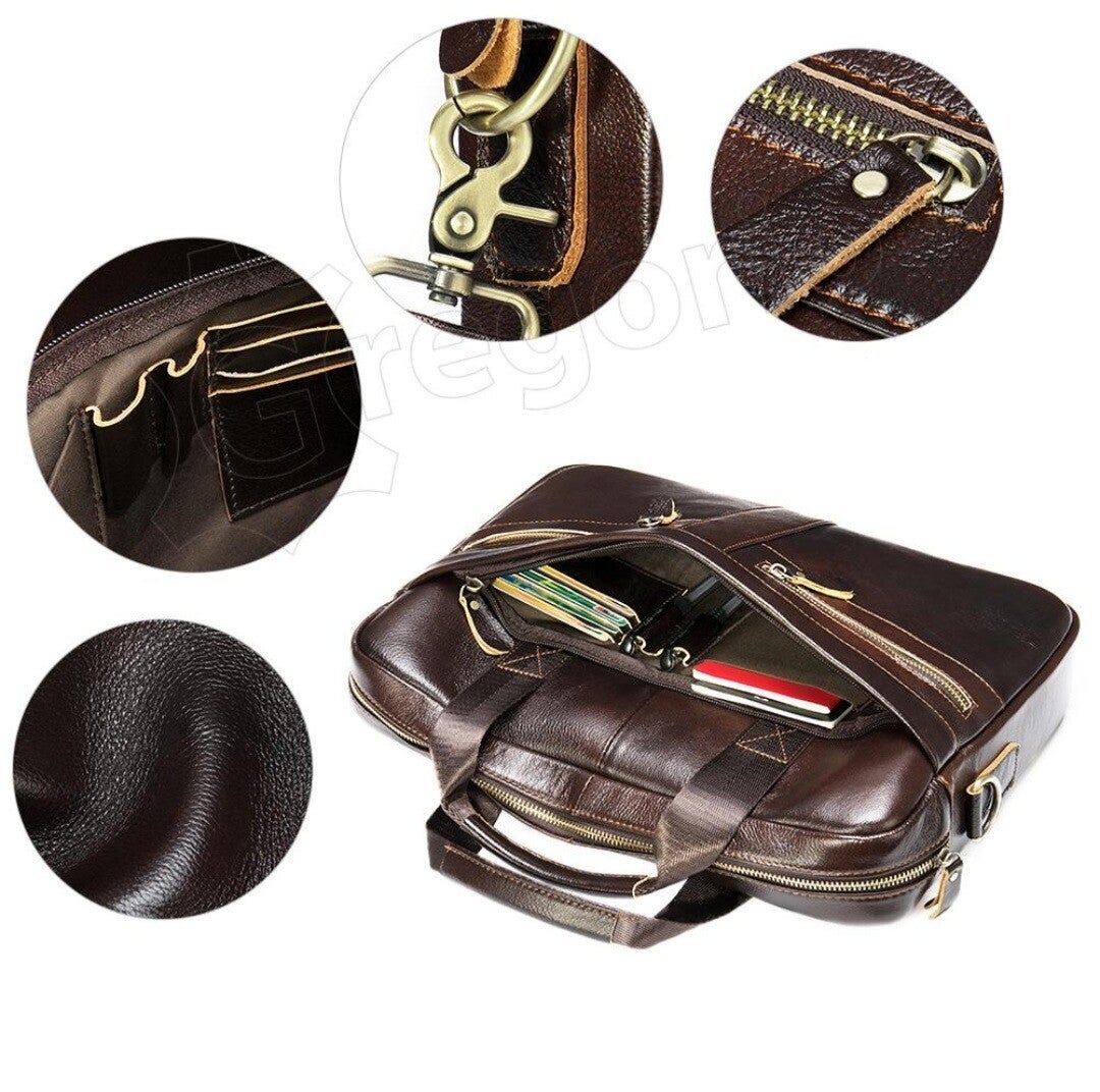 Gregorio Aktetas - Leer , Premium zakelijke schoudertas Gregorio bruin / laptoptas