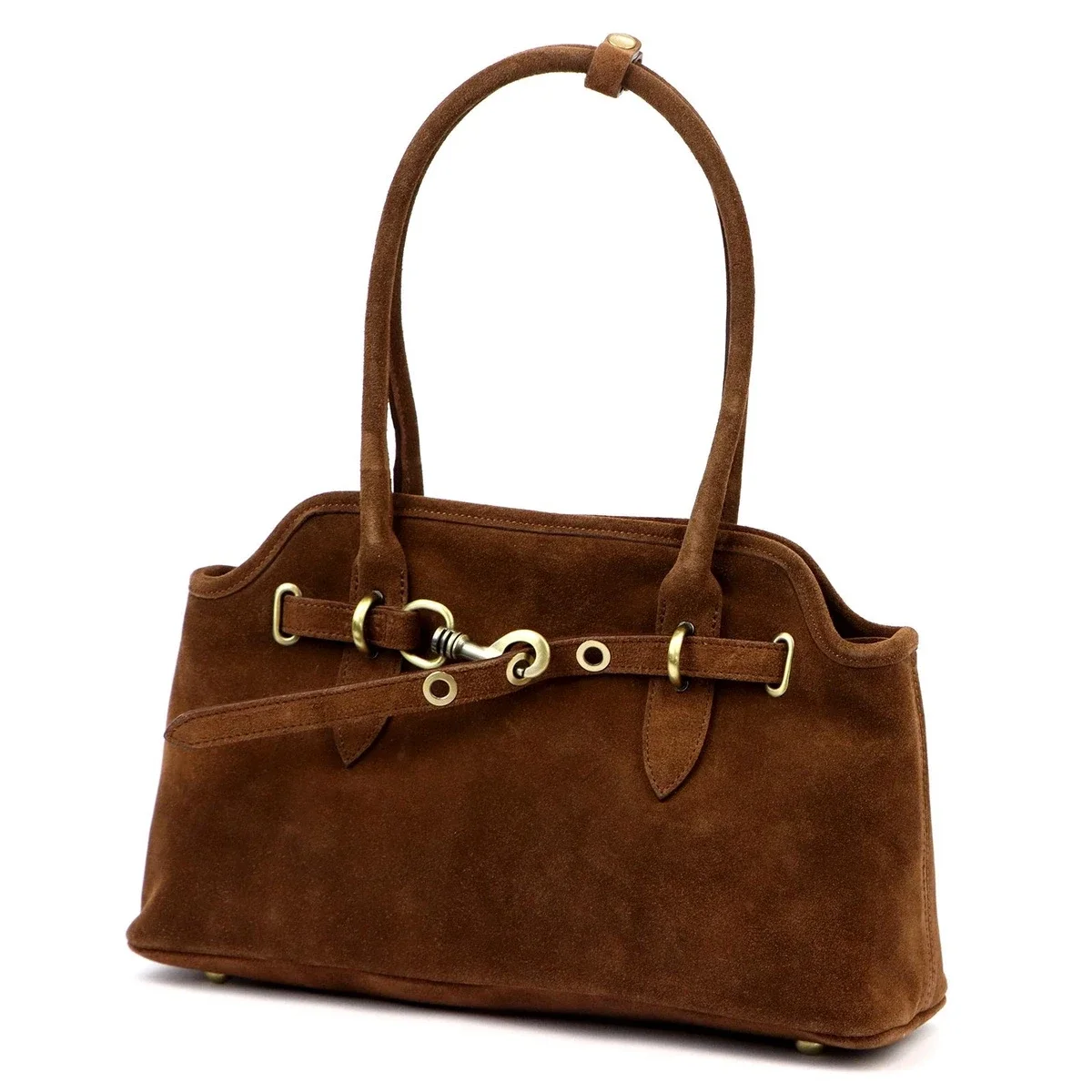 Crafted from high-quality natural suede leather with a soft, velvety texture, the Vera Pelle handbag exudes subtle luxury. Suede is not only pleasant to the touch but also durable and well-suited for daily wear. Gold-tone hardware adds a touch of sophistication and highlights the bag’s elegant design. Additionally, metal feet on the bottom protect it from dirt and damage, enhancing its longevity.