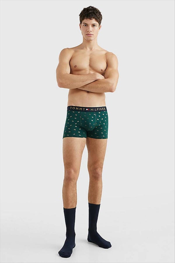 Deze gift box van Tommy Hilfiger bestaat een groene boxershort met gouden logo afwerkingen en donkerblauwe sokken.