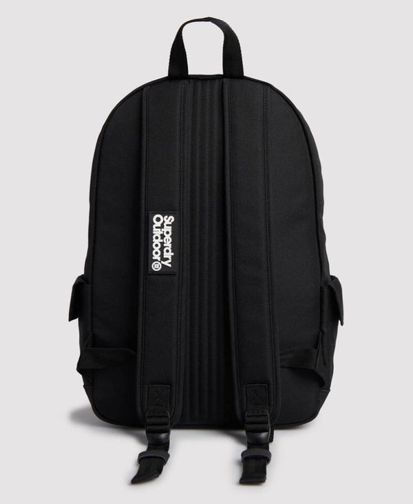 Superdry Hologram Montana-herenrugzak. Deze klassieke rugzak heeft een groot hoofdvak met rits, een handgreep aan de bovenkant en gewatteerde schouderbanden en achterkant. De rugzak heeft ook een buitenvak met een rits en twee zijvakken met drukknoopsluiting. De rugzak is afgewerkt met een Superdry-logolabel in holografisch effect op de voorkant en een silicone logolabel op één schouderband.