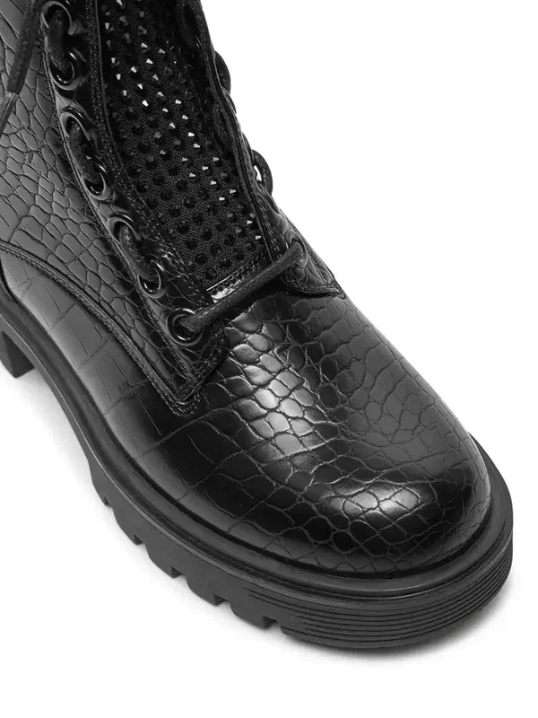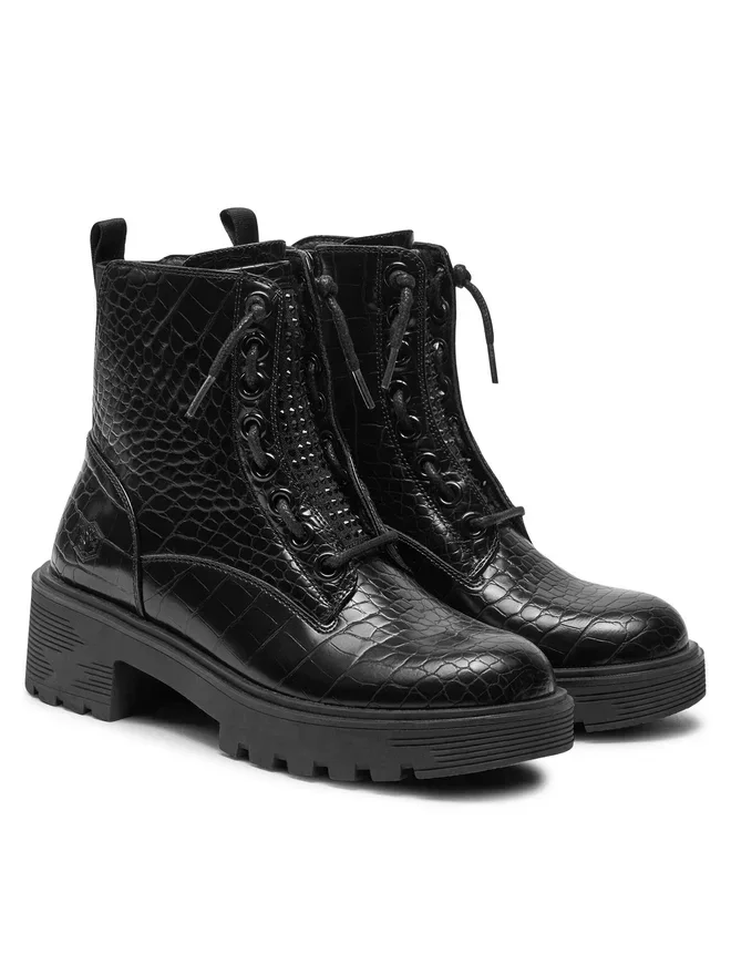 Dit Ramone enkellaarsje is geïnspireerd op legerlaarzen; stoer en karaktervol, met een hak van 5 cm voor veelzijdigheid en draagbaarheid bij elke gelegenheid. Het bovenwerk is gemaakt van Nobesto leer met pythonprint en de zool van EVA.