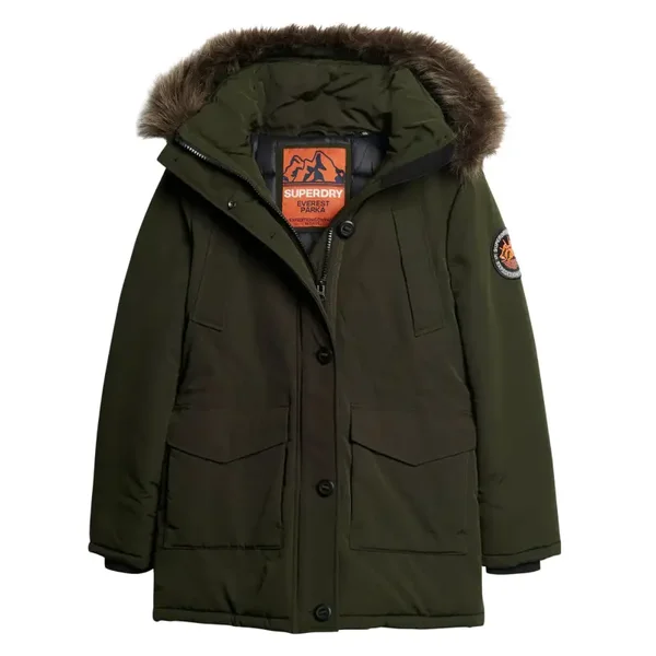 De Superdry Everest Parka Winterjas voor dames is een warme, lange jas met een capuchon en grote zakken.